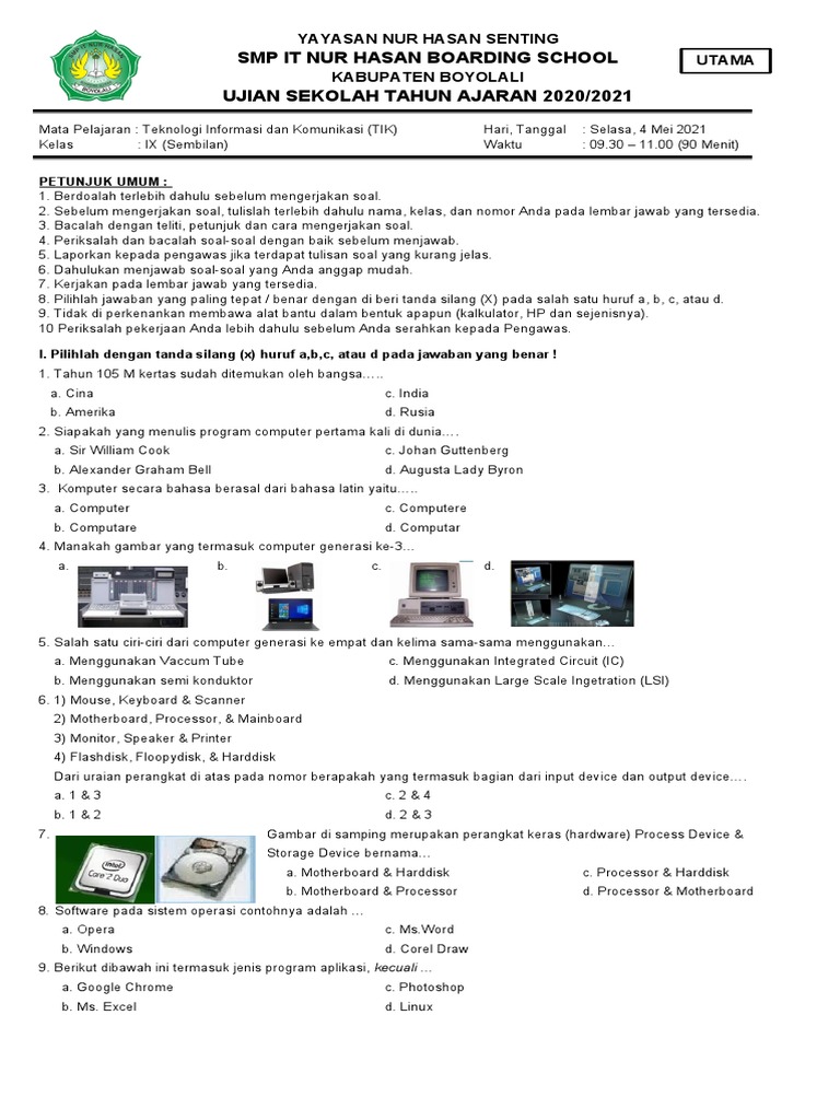 Soal Ujian Sekolah Tik Smp Kelas 9 Dan Kunci Jawaban / Soal Uas Pas Tik Kelas 9 Semester 2 - Soal jawaban asesmen pra bimtek guru belajar seri akm jenjang smp.